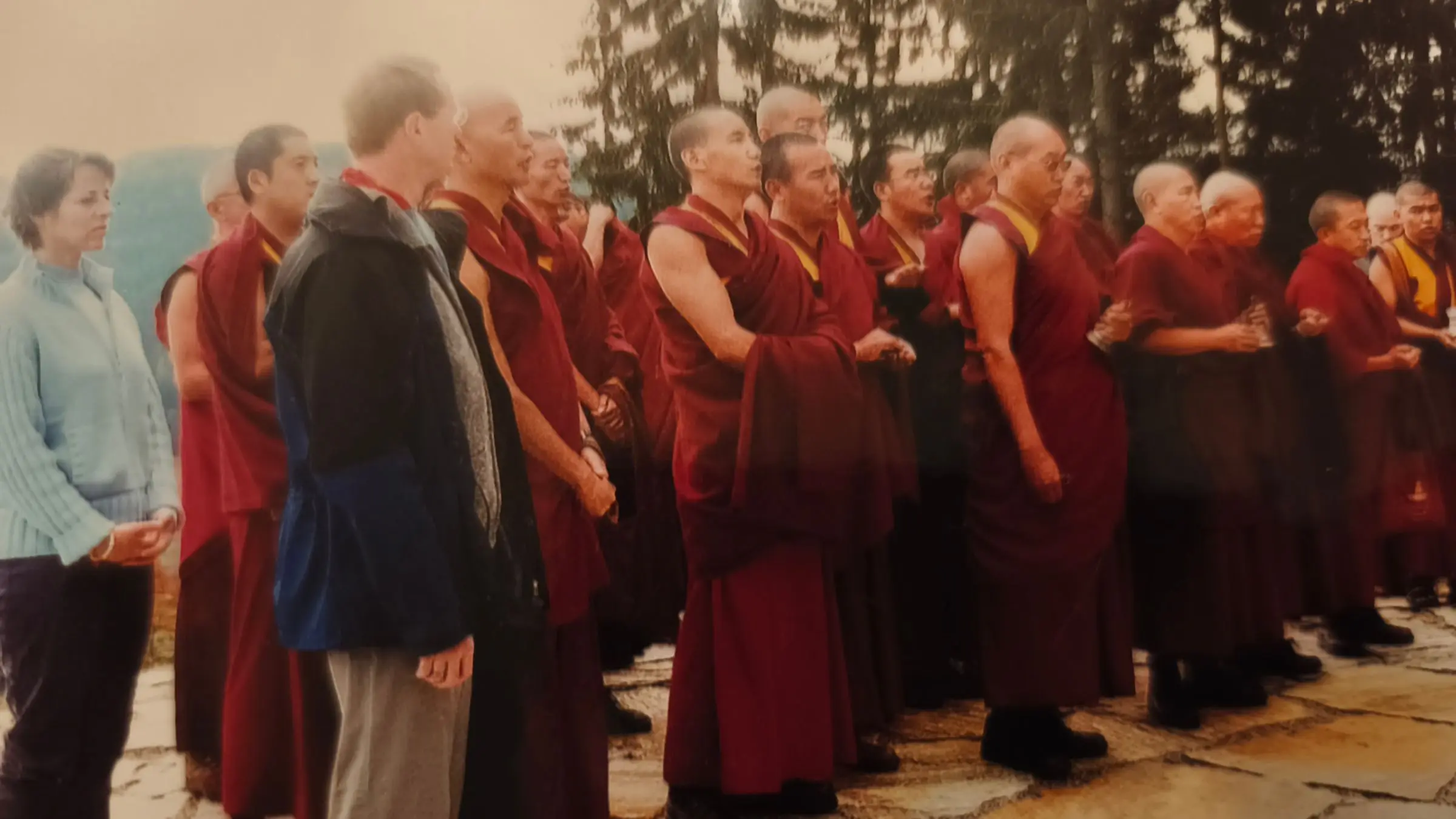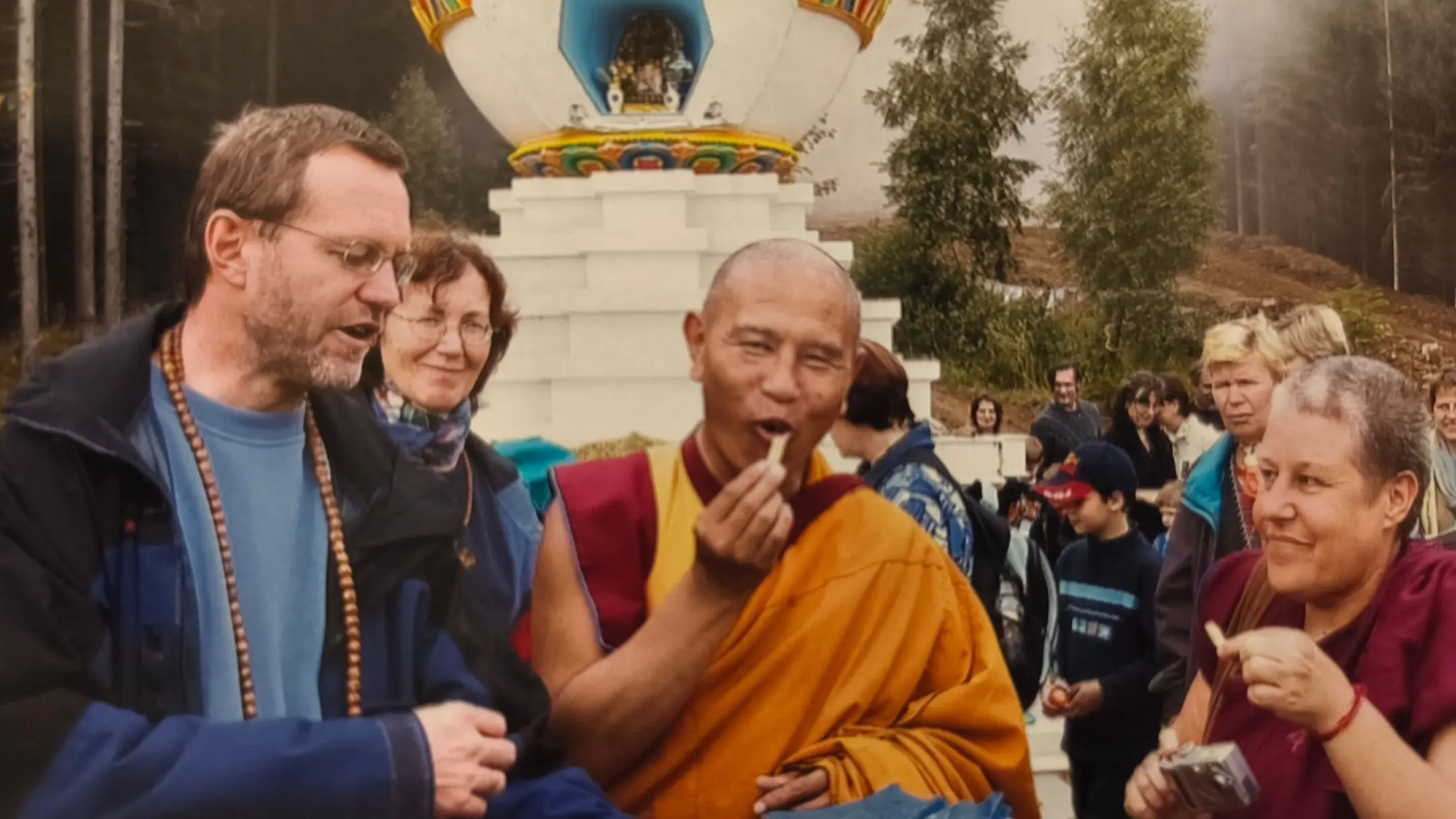 The stupa was inaugurated through a traditional rabné consecration ceremony. In this ceremony, a qualified Vajra Master invokes the blessings of the deity into the sacred object—in this case, the stupa—activating it as a powerful support for future practitioners and for the benefit of all who come into contact with it. The Kalachakra stupa at Garanas was conecrated by Jhado Rinpoche in the presence of twenty monks from Namgyal Monastery. Jhado Tulku Rinpoche is a highly respected Tibetan Buddhist master in the Gelug tradition, widely known for his connection to the Kalachakra lineage and his role as a former abbot of Namgyal Monastery. More recenlty Rinpoche also served as an Abbot and chant master at Gyuto, the Upper Tantric College from 2013 and 2017.