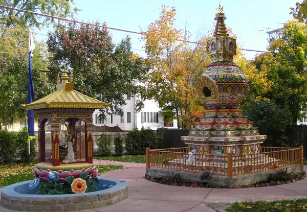 Kalachakra stupas can be found in many regions of the world, created as sacred supports for harmony, awakening, and peace. Kalachakra has a special connection with the Bodhisattva Pureland of Shambhala and a tantric prophecy of peace on earth. The altruistic compassionate beings of Shambhala have vowed to liberate our world from suffering caused by bias, materialism, and religious extremism so that we may harmonize our minds into a state of tolerance, peace and love. This will bring a Golden Age of peace and harmony to our world. It is for this reason that Kalachakra stupas have become a beacon of hope and representation of humanity’s peaceful future.